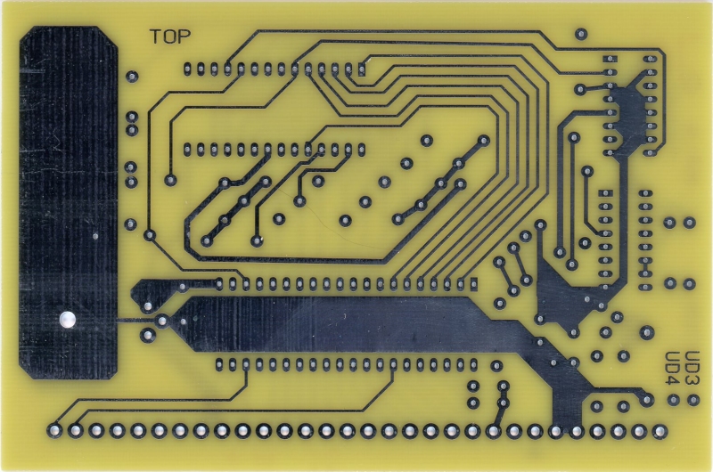 The Peripheral Technology reproduction board was reproduced to be as close as possible to the original. It does not have a solder mask or silkscreen.